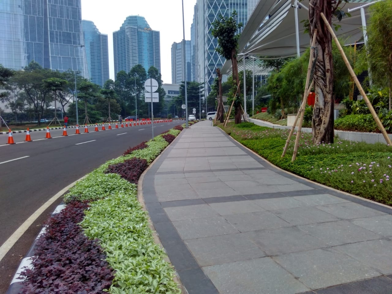 The greenbelt offers a formal and neat impression and aims to provide more green spaces in urban areas which full of dust and pollutants.